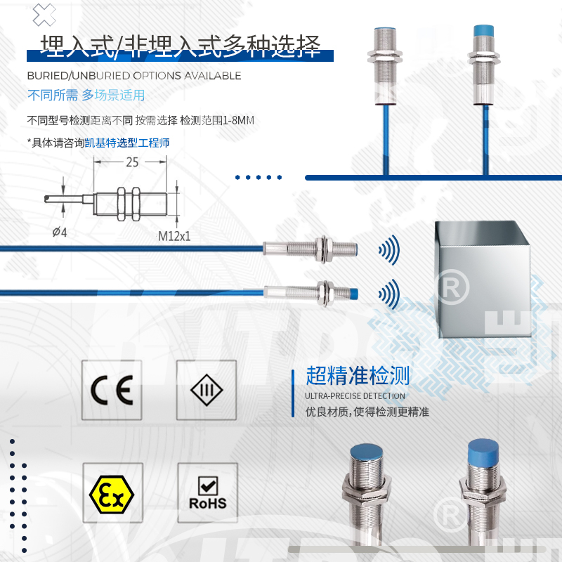 凱基特本安NAMUR接近開關主要應用于需要防爆的場合設備和環境,如煤礦、石化等, NAMUR信號為世界上應用最廣泛的本質安全的數字量輸入和頻率量輸入的標準信號。其最早為德國標準(?DIN19234?)。后成為歐洲標準(?EN?50227,DIN?EN?60947-5-6?)。NAMUR信號為無源2線制,標稱8VDC供電,1mA?和3mA開關信號。NAMUR型傳感器均為本質安全防爆儀表,通常與隔離式安全柵配合使用。