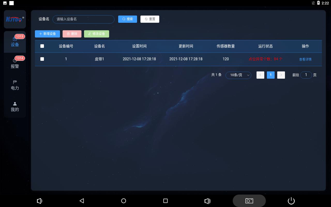 設(shè)備頁面可添加刪減配置查看皮帶數(shù)量名稱以及本皮帶上的保護(hù)裝置數(shù)量以及運(yùn)行狀態(tài)