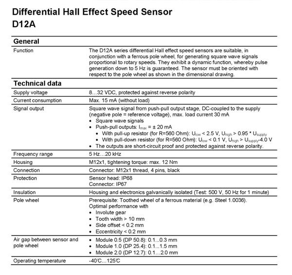 D12A 速度傳感器