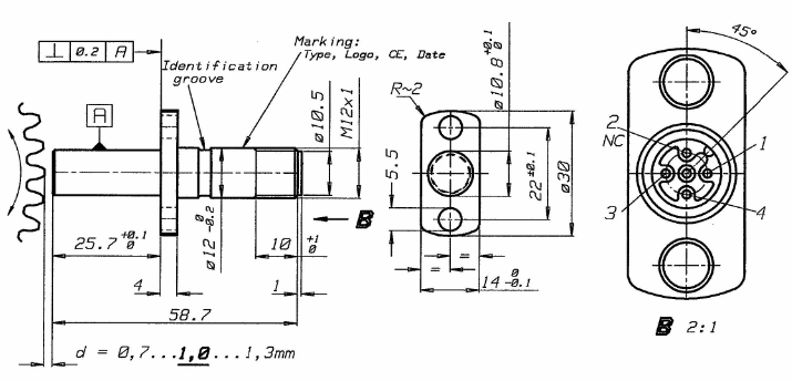 • 安裝螺紋:M12x1